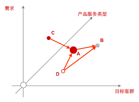 <p>在三维坐标系标定具体产品服务的基础上,产品管理人员甚至可以确定一个<span class="so-called">支撑点</span>,利用产品支撑原理衍生新产品,使用<span class="so-called">链路将支撑点的用户群输送到新产品</span>的使用中,实现新的赢利。</p>